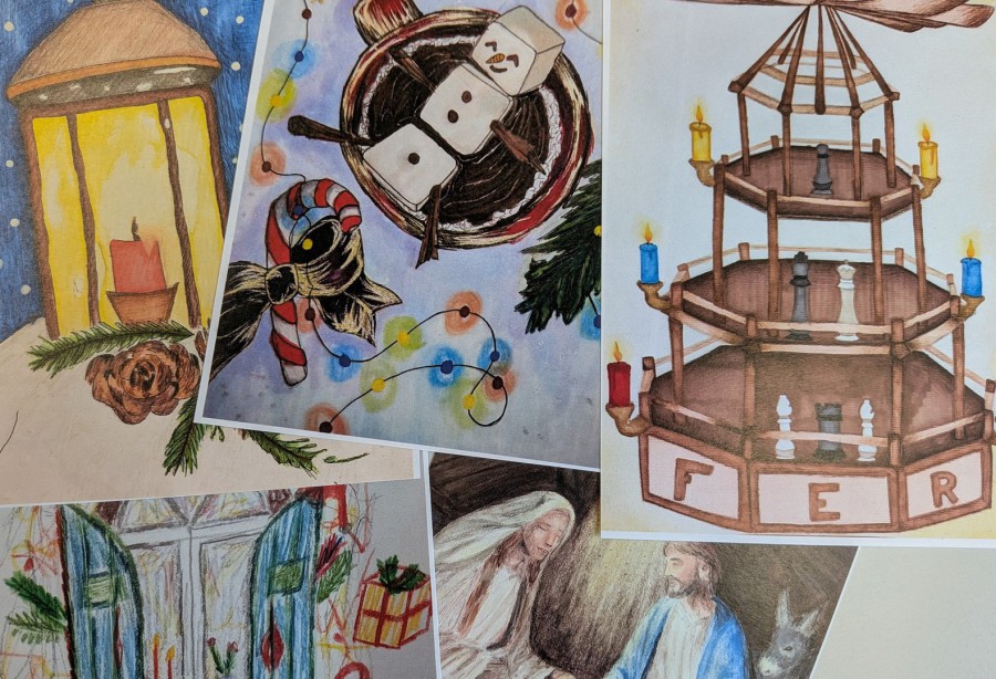 Wer zeichnet die schönste Weihnachtskarte? Fünf Zehntklässlerinnen bewiesen ihr Können und ihre Kreativität beim diesjährigen Kunst-Wettbewerb. Die Jury konnte sich am Ende nicht entscheiden, sondern kürte Julianna, Florencia, Melda, Ruzica und Sarah allesamt zu Siegerinnen. Dankeschön für die tollen Weihnachtskarten!
